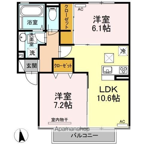| 築年月 | 2019年4月 | 間取り | 2LDK( LDK10.6畳(1階)/洋室6.1畳(1階)/洋室7.2畳(1階) ) | 専有面積 | 55.2m2 |