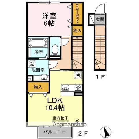 | 築年月 | 2017年6月 | 間取り | 1LDK( LDK10.4畳(2階)/洋室6畳(2階) ) | 専有面積 | 50.4m2 |